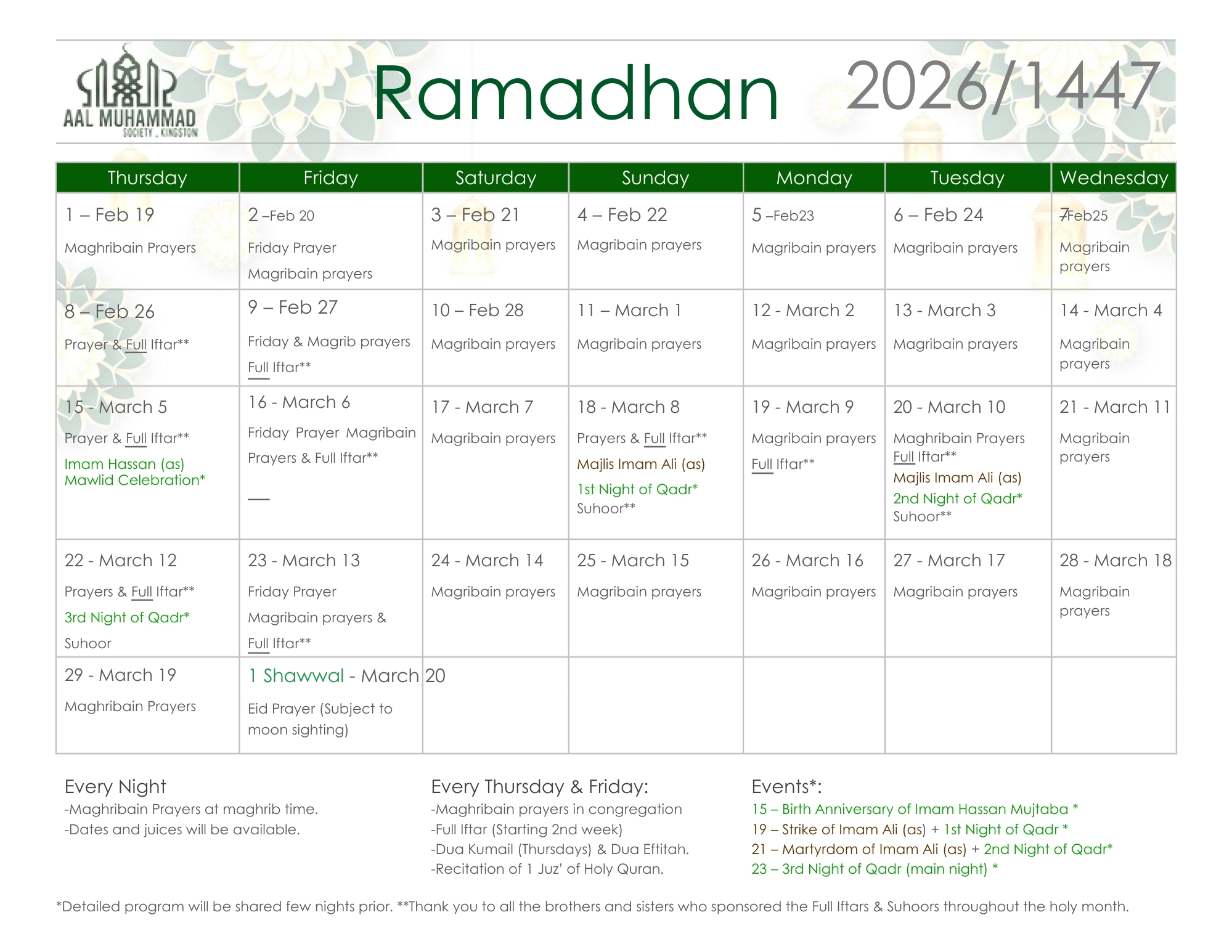 Recently a group of residents of Kingston and the surrounding areas came together and considered their religious obligation to establish an Imambargah/Husainiyah in Kingston. The Shia community residing in Kingston and the surrounding areas has been renting premises for Husainiyah for the last twenty-five year came together in building a space where they can freely practice their religious obligations and duties.